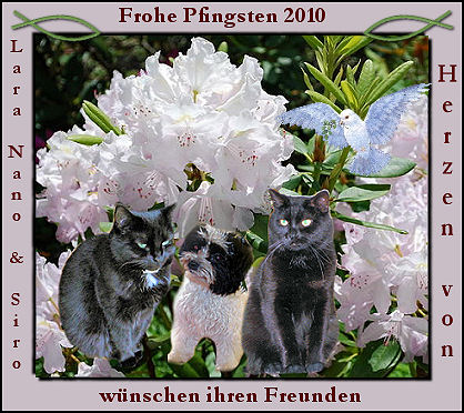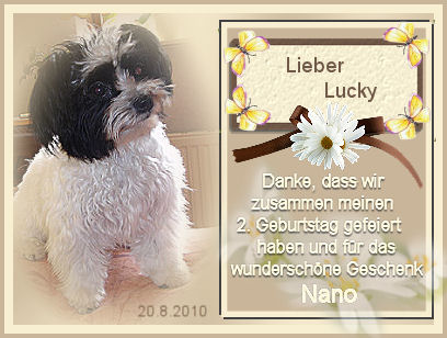 20.12.2010 heute ist mein 12. Geburtstag und freue mich über alle meine Freunde, die vorbeischauen ;-) 14.12.2010 wir wünschen allen unseren lieben und langjährigen Internetfreunden ein friedliches 19.10.2010 Frauchen hat sich doch entschlossen, die alten Halloweenseiten wieder zu verlinken. 27.08.2010 wir haben ein liebes Dankegeschenk von Nano`s Geburtstag bekommen und Geschenke haben