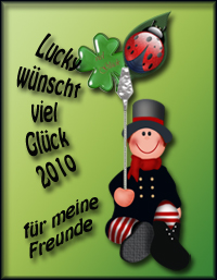auf der Party habe ich Gewinne und Geschenke mitnehmen dürfen. 31.12.2009 Das Jahr neigt sich dem Ende und wir wünschen all unseren lieben Internetfreunden, Wer noch keinen Glücksbringer hat, kann sich unseren gerne mitnehmen.