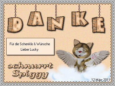 05.07.2011 Heute bekamen wir die sehr traurige Nachricht, das unsere liebe und langjährige wir gedenken Yana im Regenbogenland 15.05.2011 unsere lieben Freunde, die Berliner Kampfkatzen bedanke sich mit einem tollen 14.04.2011 Unsere lieben Internetfreunde haben schon fleissig Ostergeschenke geschickt. Danke dafür. 18.03.2011 Wir haben ein Dankegeschenk von Spiggy`s himmlischer Burzelfeier bekommen